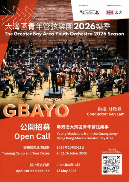 申請資格:來自粵港澳大灣區、年齡介乎 16 至 26 歲之青年管弦樂手